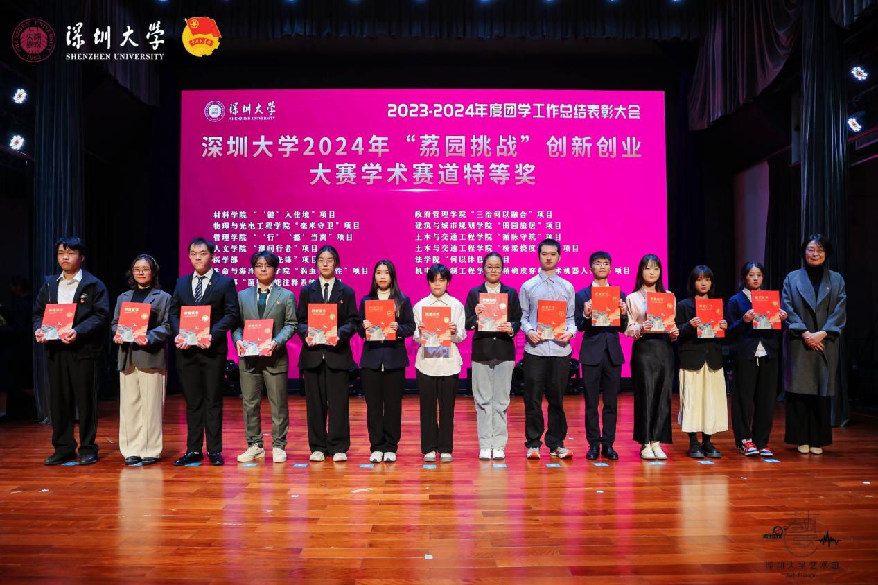 2023-2024年度团学工作总结表彰大会在国际会议厅举行,我院团委获2023年度五四红旗团委(标兵)奖项、“键入佳境”项目获2024年“荔园挑战”创新创业大赛学术赛道特等奖。