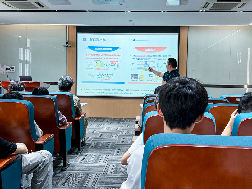 的前沿成果。他谈到,我们学院在新能源材料、先进固态电解质、压电材料等领域已经取得了国际认可的突破,相关成果发表在《Nature》等顶刊上;学院“逐梦蓝图”团队更是在“挑战杯”和中国国际大学生创新大赛中连拿两项最高奖。他以此激励同学们,大家要看到学院的实力,也要看到自己的潜力,把对科研的热情用到实验室里,争取早日做出有分量的成果。